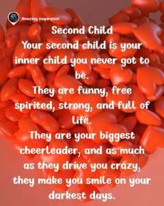 Your second child ๐ is your inner child you never got to be โ funny ๐, free-spirited ๐, strong ๐ช, and full of life โจ. They drive you crazy but light up your darkest days ๐