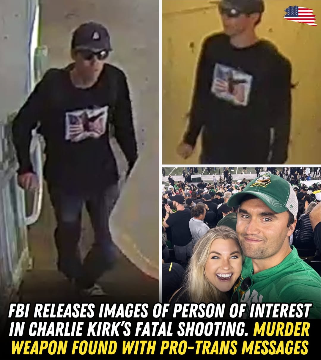 The person of interest in Charlie Kirk’s killing has been seen for the first time in photos released by the FBI. Disturbingly, he left several vile messages on his weapon. Here’s what we know so far 👇💔
